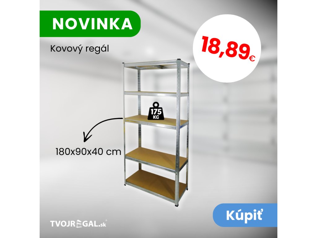 Kovový regál pozinkovaný je ideálnym regálom do každej komory, pivnice či dielne. Regál pozostáva z piatich políc . Pevnosť políc zvyšujú aj stredné podpery. Zaoblené hrany kovovej konštrukcie zabraňujú poraneniu pri používaní regálu. Regál je doplnený aj o plastové krytky nôh. Okrem toho, že zabezpečujú jeho lepšiu stabilitu, zabraňujú aj poškrabaniu podlahy.