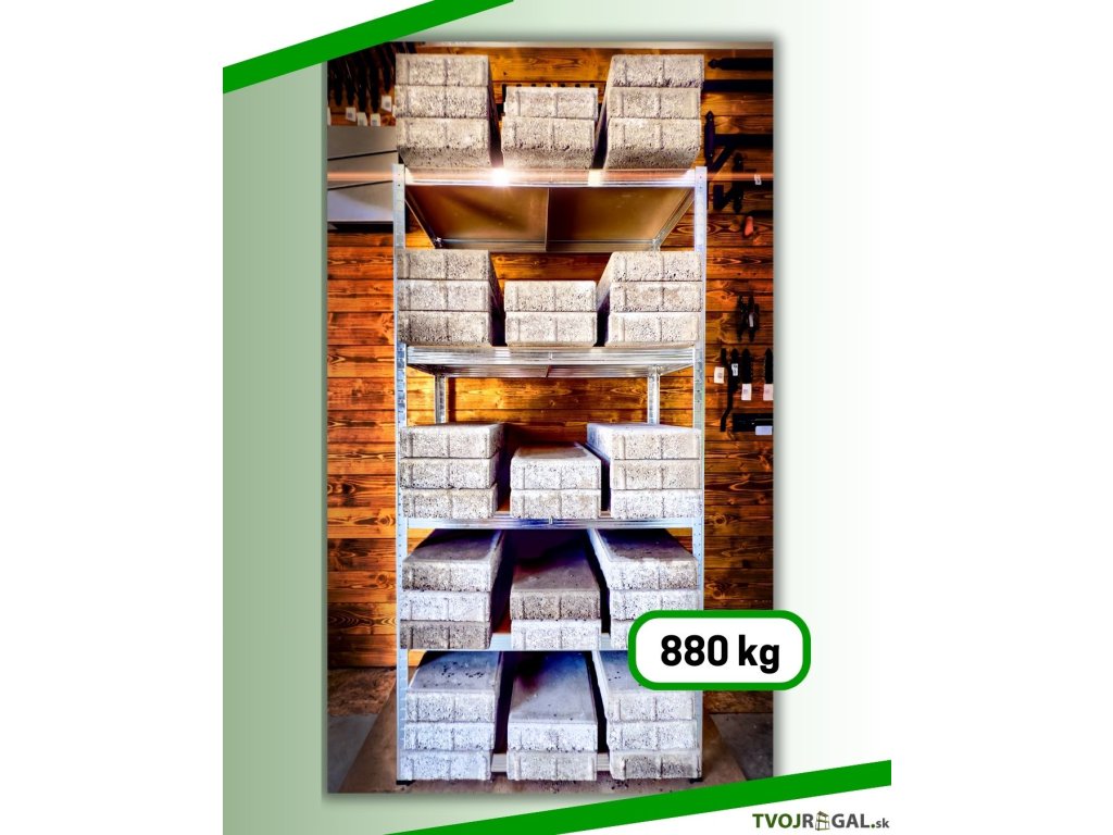 V internom teste záťaže na našej predajni tento regál udržal 40 betónových kociek v celkovej váhe 880 kg.