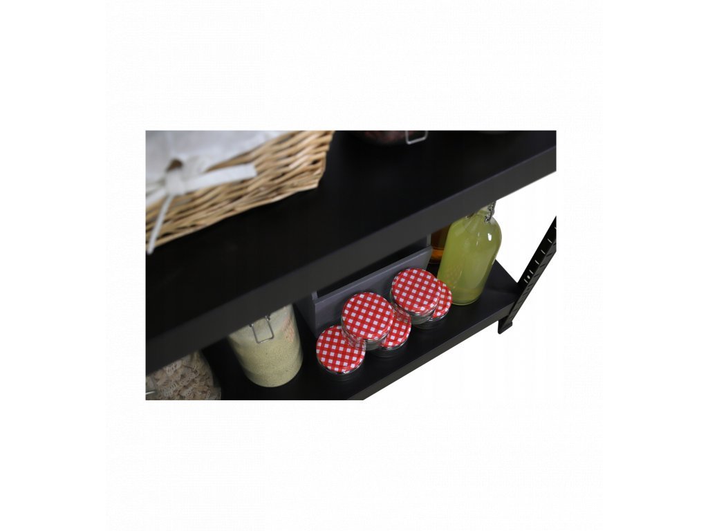 - Materiál políc: Plechová polica lakovaná čierna