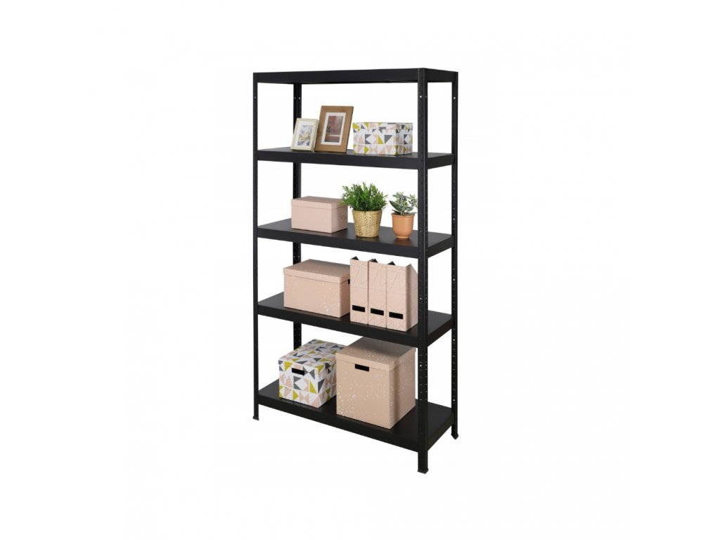 CELOKOVOVÝ REGÁL 180X90X30 5 POLÍC Lakovaný čierny