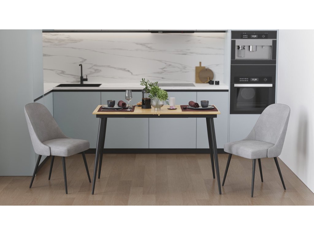 Vneste do svojho domova harmóniu štýlu a praktickosti s moderným jedálenským stolom v elegantnom prevedení. Základná dĺžka 120 cm sa dá jednoducho rozšíriť až na 160 cm vďaka premyslenému systému sklopných krídiel, ktorý umožňuje rýchle, plynulé a bezpečné rozkladanie. Stôl je po rozšírení ideálnym riešením pre rodinné oslavy či spoločné večery s priateľmi.