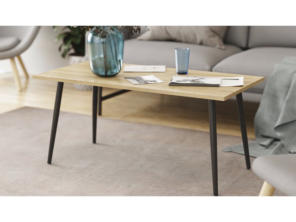 Konferenčný stolík Montana je štýlovým a praktickým doplnkom, ktorý dodá každému interiéru moderný loftový charakter. Kombinácia čiernej kovovej konštrukcie a drevo dekoru pôsobí nadčasovo a elegantne, vďaka čomu sa stolík prirodzene hodí do obývačky, kancelárie aj na krytú terasu. Jeho kompaktné rozmery a nízka výška poskytujú dostatok priestoru na každodenné používanie bez toho, aby miestnosť pôsobila preplnene.