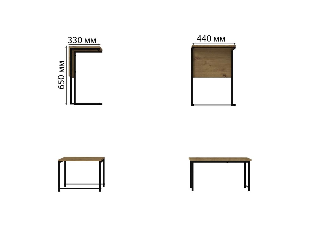 Čierny kovový rám v kombinácii s drevotrieskovou doskou vytvára elegantný vzhľad, ktorý sa ľahko prispôsobí rôznym typom interiérov. Vďaka rozmerom 34,5 × 66,2 × 44 cm je stolík kompaktný a ideálny aj do menších priestorov. Stolík poslúži na odkladanie kníh, časopisov či drobností a je ideálny aj na servírovanie nápojov alebo občerstvenia počas stretnutí s priateľmi.