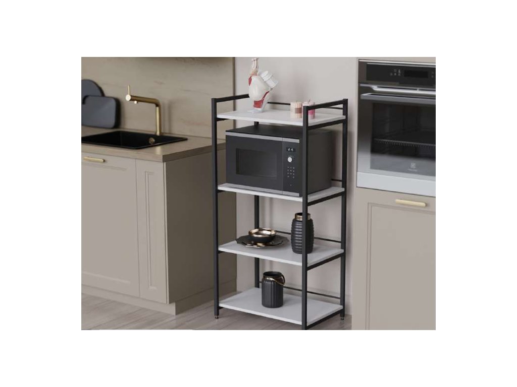Umožňuje pohodlné uloženie kuchynských spotrebičov, riadu či príslušenstva, vrátane mikrovlnnej rúry. Stabilná konštrukcia z kvalitného kovového rámu zabezpečuje vysokú odolnosť a dlhú životnosť aj pri každodennom používaní.