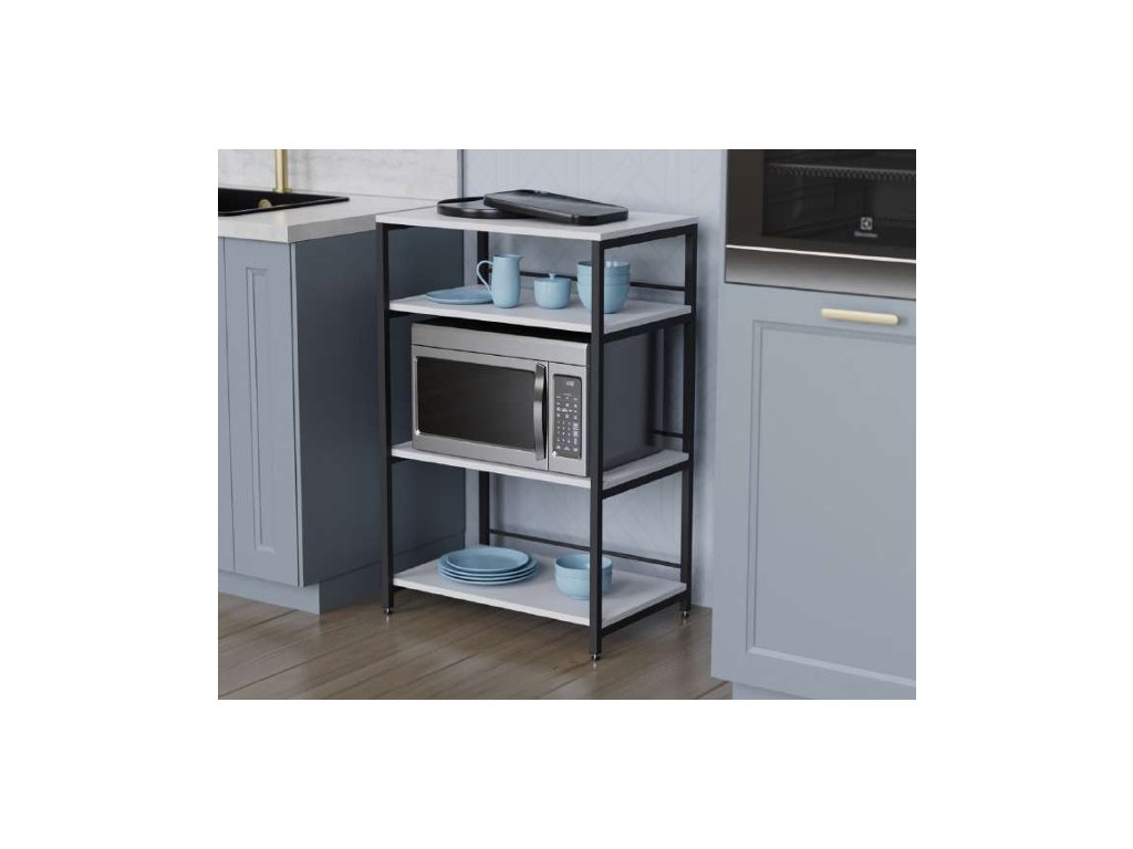 Umožňuje pohodlné uloženie kuchynských spotrebičov, riadu či príslušenstva, vrátane mikrovlnnej rúry. Stabilná konštrukcia z kvalitného kovového rámu zabezpečuje vysokú odolnosť a dlhú životnosť aj pri každodennom používaní.