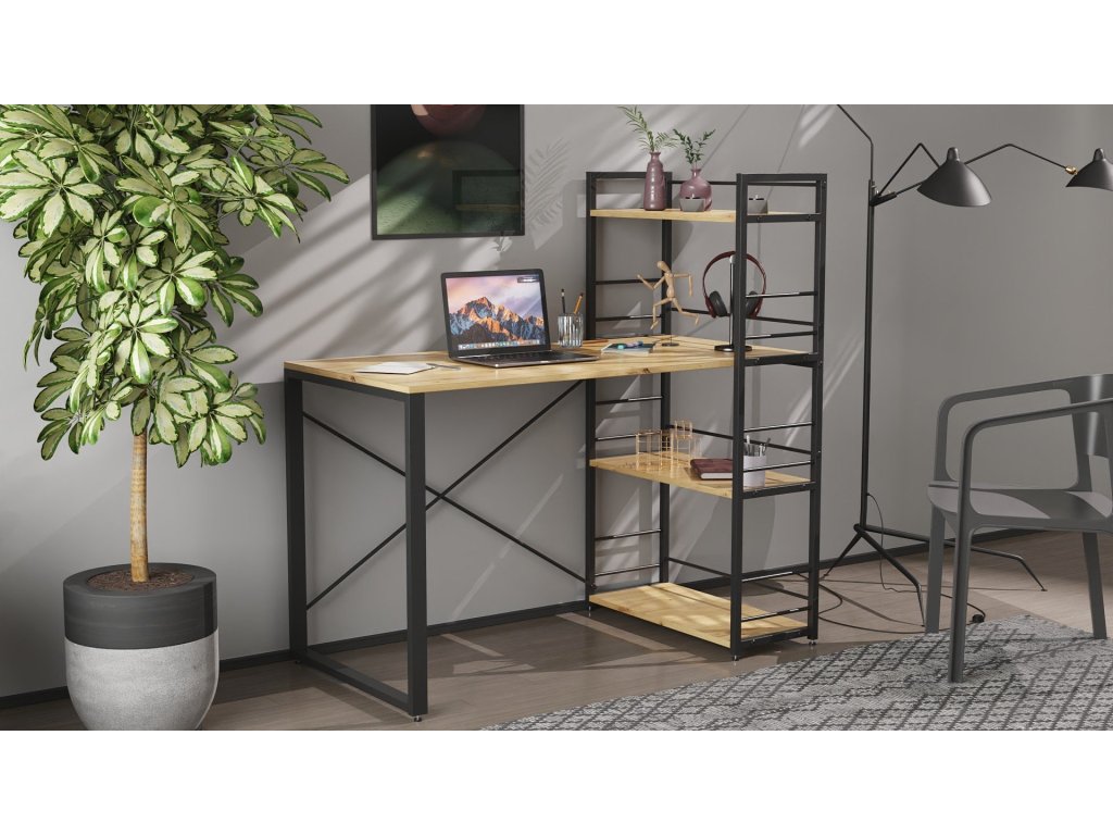 Pracovný stôl Connect s policou je praktickým a moderným riešením pre každodennú prácu, štúdium aj domáce kancelárie. Spája priestrannú pracovnú plochu s viacúrovňovou policou, ktorá umožňuje prehľadné a efektívne usporiadanie kníh, kancelárskych potrieb, dekorácií či technického vybavenia.
