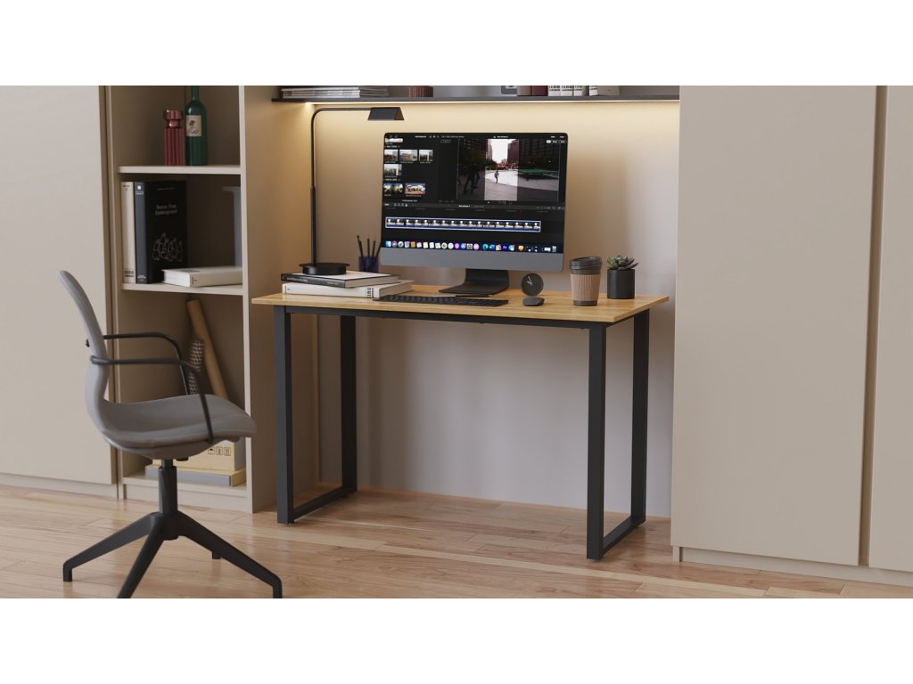 Písací stôl Knap II s čiernou kovovou konštrukciou a pracovnou doskou z 16 mm laminovanej drevotriesky je praktickým a dizajnovo čistým riešením pre moderné pracovné prostredie. Spája funkčnosť, stabilitu a nadčasový štýl, vďaka čomu je ideálny do domácnosti aj kancelárie.