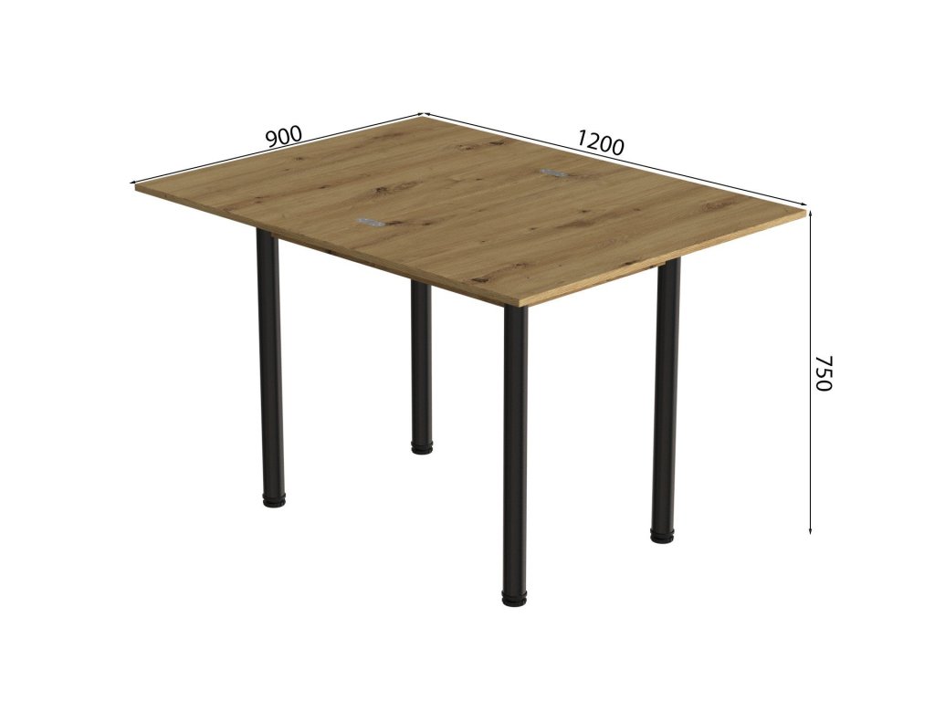 Stôl má klasický obdĺžnikový tvar a je vyrobený z kvalitných materiálov – pevná kovová základňa a odolná drevotriesková doska zaručujú stabilitu a dlhú životnosť. Rozmery 75 × 120 × 90 cm poskytujú pohodlné používanie, pričom biele prevedenie základne dodáva priestoru sviežosť, ľahkosť a moderný vzhľad.