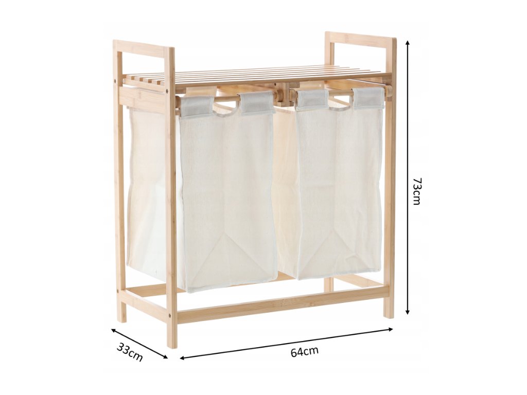 Regál bambusový s košmi na bielizeň 73x64x33 cm