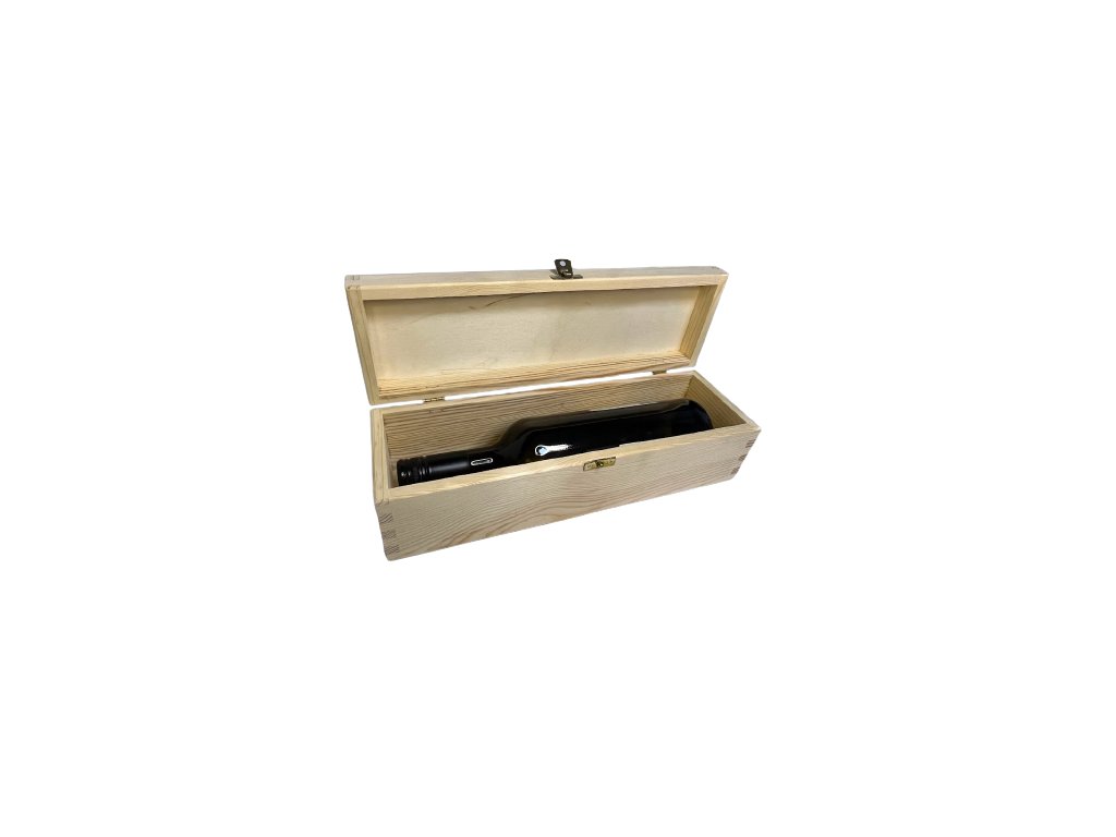 Elegantná drevený box s vekom na 1 fľašu vína. Originálna alternatíva darčekových tašiek, ktorá vydrží. Box možno využiť aj ako dekoráciu.
