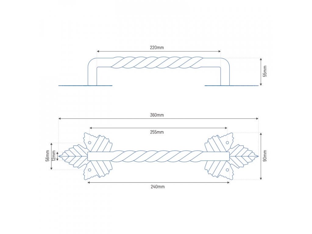 Madlo je vyrobené z odolnej ocele a štvorcovej tyče s priemerom 12 mm. Je ošetrené práškovou farbou, ktorá zaisťuje trvácnosť a odolnosť voči poveternostným vplyvom. Môžete ho použiť napríklad na dvere, brány či dvierka skríň.