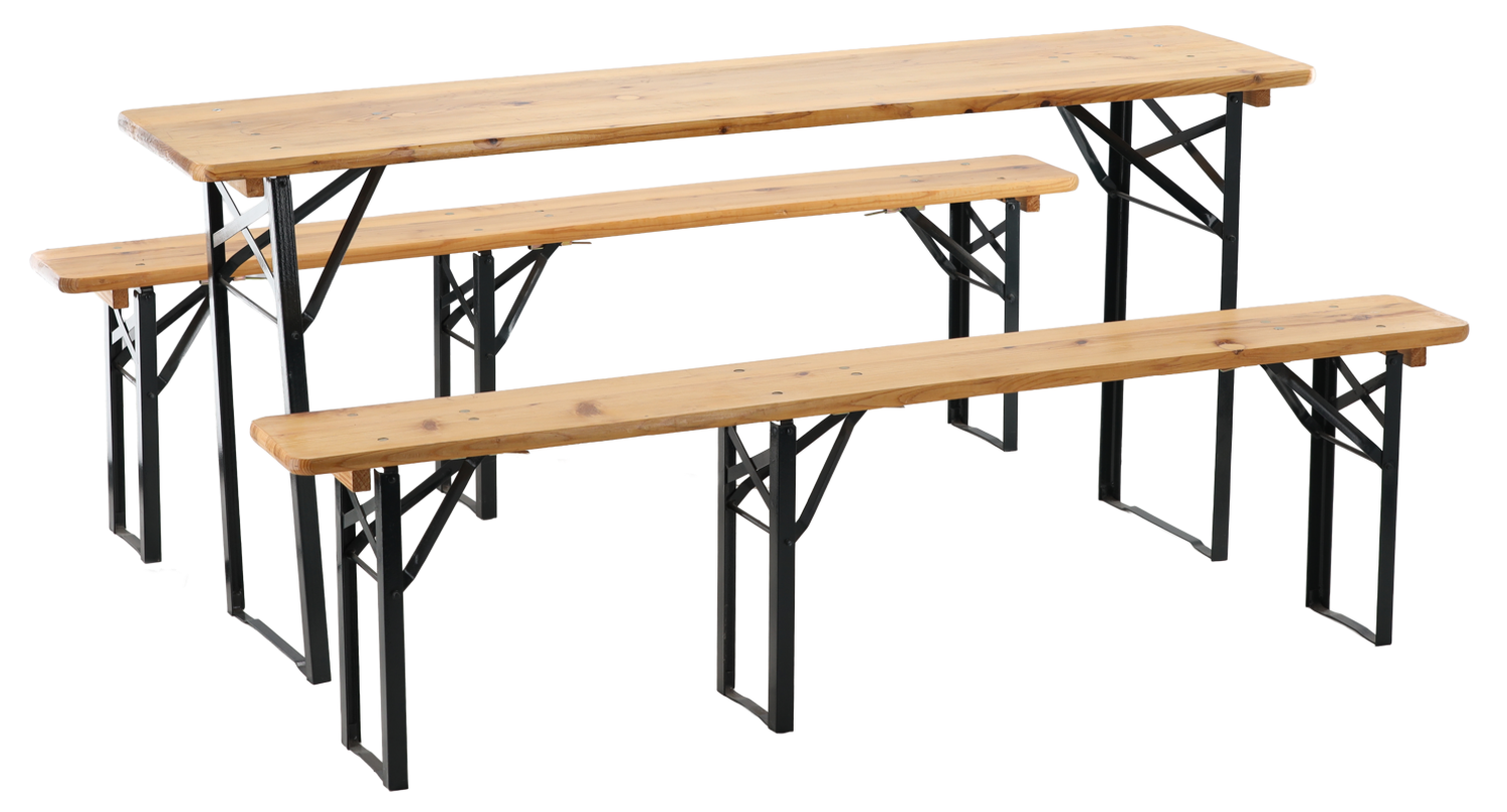 Praktická a pevná pivná súprava predstavuje ideálne riešenie pre záhradné oslavy, festivaly, grilovanie, dožinky aj rodinné stretnutia. Spojenie prírodného dreva a oceľovej konštrukcie s práškovým nástrekom zabezpečuje dlhú životnosť, stabilitu a zároveň elegantný vzhľad.