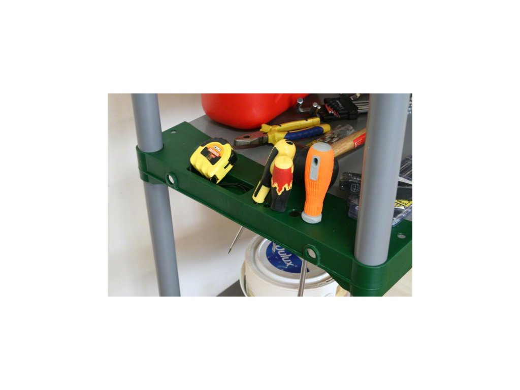 Chcete mať skrutkovač vždy po ruke? Každý bočný držiak police je vybavený špeciálnymi otvormi vhodnými pre odloženie skrutkovačov či kľúčov. Tiež je tu miesto určené na odloženie drobných predmetov ako sú napríklad skrutky.