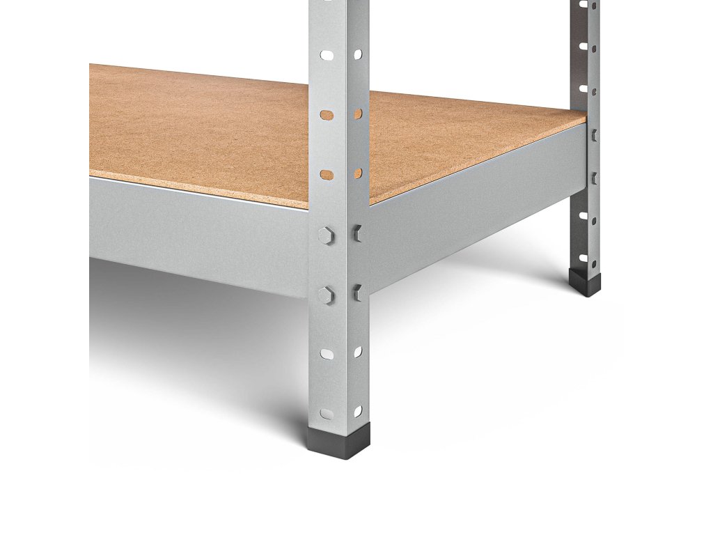 Skrutkovací systém spojenia nôh zaisťuje maximálnu pevnosť spoja a celkovú stabilitu regálu.