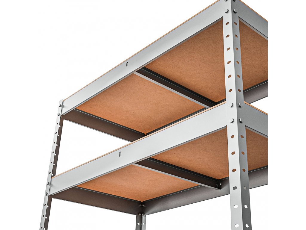 Skrutkovací systém spojenia nôh zaisťuje maximálnu pevnosť spoja a celkovú stabilitu regálu.