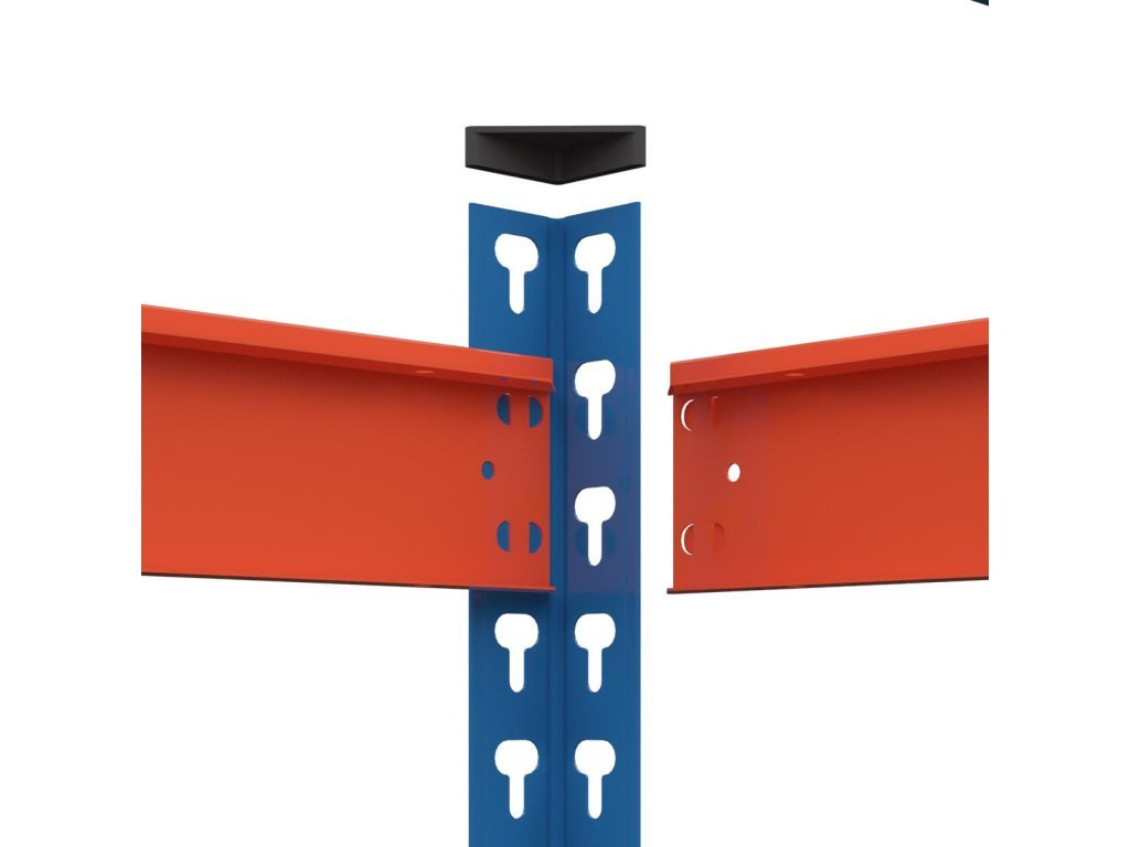 Lakovaný oranžovo-modrý povrch nielen esteticky zlepšuje vzhľad regálu, ale je aj odolný voči korózii, čím predlžuje jeho životnosť a udržiava ho v skvelom stave aj v náročných podmienkach.