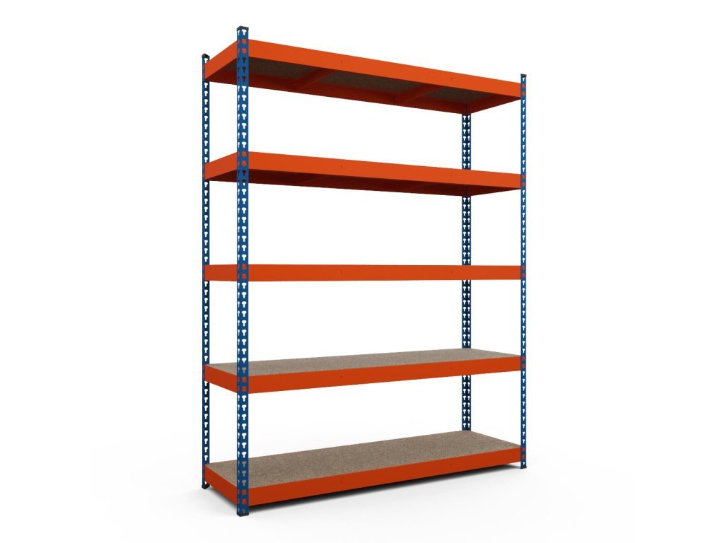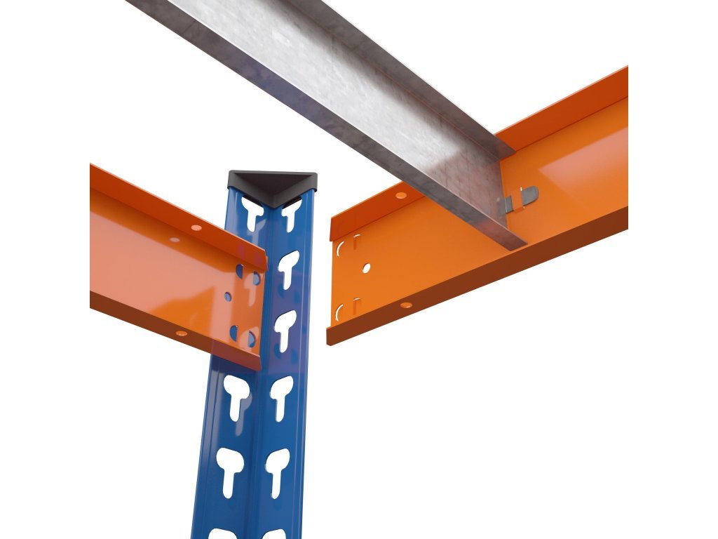 Lakovaný oranžovo-modrý povrch nielen esteticky zlepšuje vzhľad regálu, ale je aj odolný voči korózii, čím predlžuje jeho životnosť a udržiava ho v skvelom stave aj v náročných podmienkach.