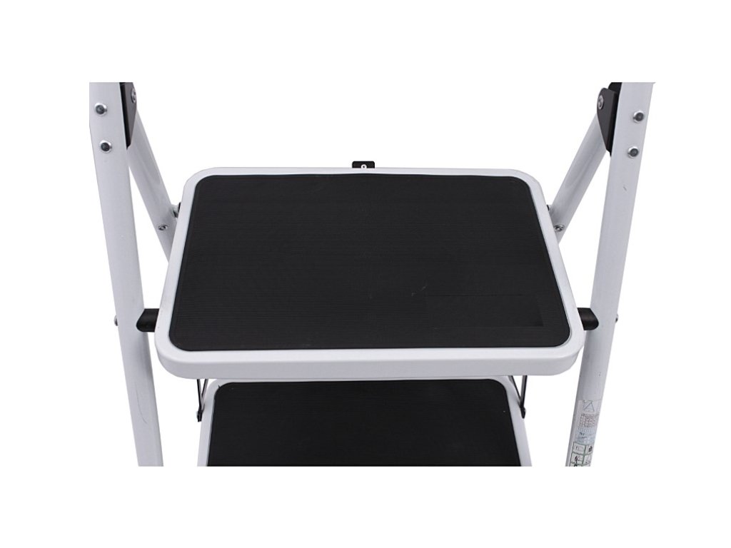 Schodíky SUPERMAX sú obľúbené vďaka veľkým nášľapným schodíkom s protišmykovou gumou. Robustná oceľová konštrukcia poskytuje stabilitu a široké protišmykové nášľapy zaručujú bezpečné a pohodlné státie. Model disponuje jedným schodom a pracovnou plošinou, ktorá tvorí druhý, najvyšší stupeň.