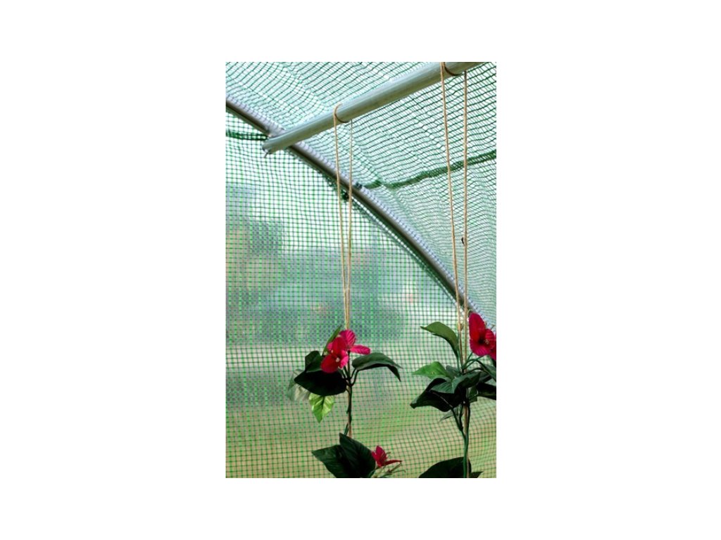 Fólia je vystužená integrovanou PP sieťkou, ktorá zvyšuje jej odolnosť voči roztrhnutiu, zároveň chráni rastliny pred intenzívnym slnečným žiarením a pomáha udržiavať stabilnú teplotu i vlhkosť. Stabilný rám z pozinkovaných oceľových rúr s priemerom 25 mm a hrúbkou 0,65 mm poskytuje vysokú pevnosť, antikoróznu ochranu a odolnosť voči vetru či zaťaženiu.
