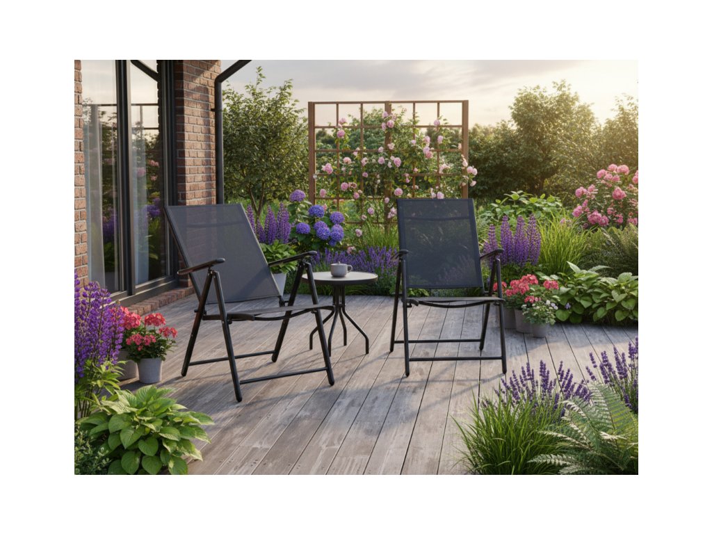 Set skladacej záhradnej stoličky a okrúhleho stola spája odolnosť, pohodlie a elegantný vzhľad, vďaka čomu sú ideálnou voľbou na balkón, terasu aj do záhrady. Oceľová konštrukcia s práškovou povrchovou úpravou zabezpečuje stabilitu a ochranu pred poveternostnými vplyvmi, takže spoľahlivo poslúžia počas mnohých sezón.